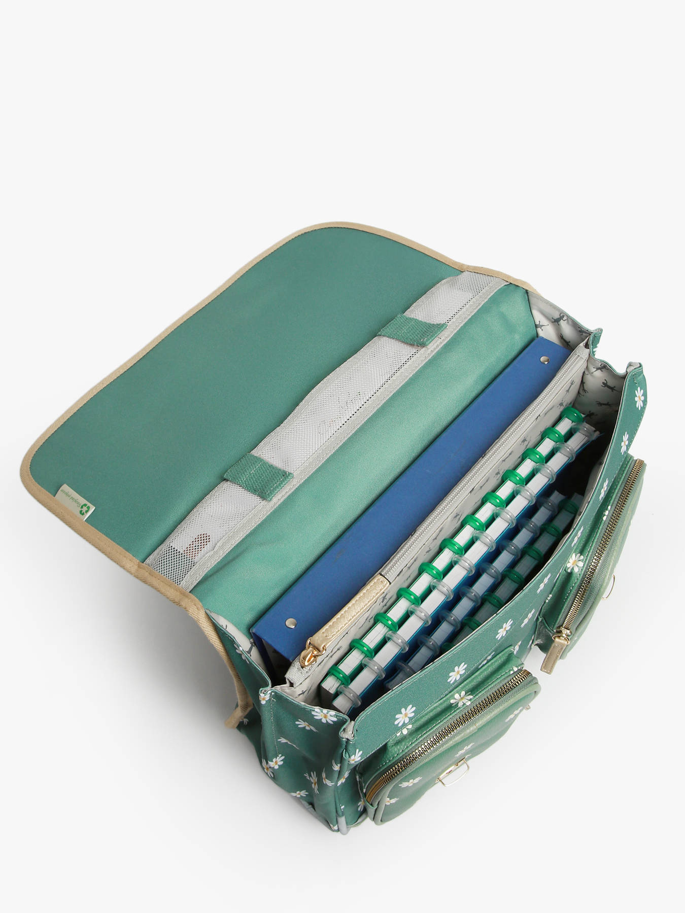 38 cm - 18 litres - 1.07 kg ~ Cartable enfant primaire 38cm de la ligne Vintage Fantasy de chez Caméléon, parfait pour le CP, CE1 et le CE2. Il se divise en deux compartiments séparés par une poche centrale zippée et peut contenir les formats cahiers A4 et 24x32cm. On retrouve à l'extérieur du cartable un emplacement pour la gourde. Pratique, il dispose de deux poches à fermeture éclair sur le devant, idéales pour un petit goûter ou l'agenda. Petit plus, ce cartable dispose d'une étiquette nom. Le fond du cartable est renforcé pour plus de solidité et des bandes réfléchissantes sont disposées autour du sac et sur les bretelles. Conçu pour le confort des enfants, le dos et les bretelles sont rembourrés. Petit plus, la règle est offerte ! Fabriqué en polyester recyclé imperméable.